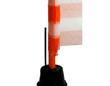 - • Cor da Tela e Postes: Laranja Segurança com listras brancas.